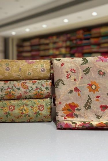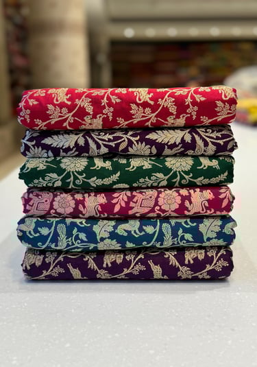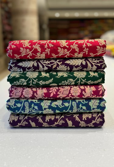 High-quality unstitched suit materials in vibrant colours and prints, perfect for custom-tailoring your ideal ethnic outfit