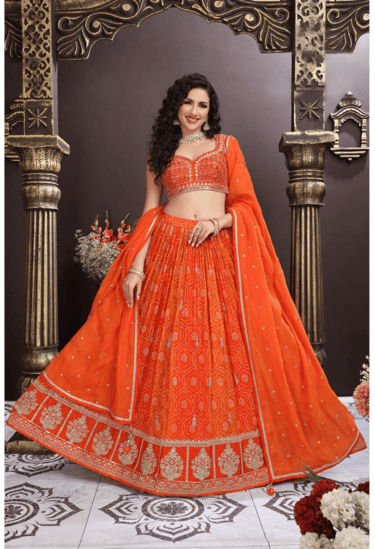 Graceful and festive, our lehenga cholis combine rich fabrics, embroidery and modern designs for weddings and special events.