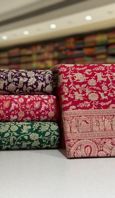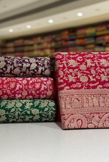 Elegant and timeless, our sarees feature traditional weaves, rich fabrics and intricate designs for every festive and wedding occasion.