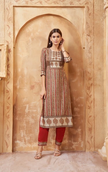 A fashionable ethnic ensemble, our jacket kurta sets combine comfort and sophistication for festive, wedding or cultural functions.